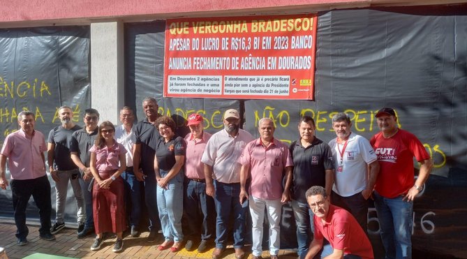 "O Bradesco, mesmo após registrar lucro de R$ 16,3 bilhões em 2023, segue com a política de fechamento de agências em todo o país. Em Dourados, a medida já havia impactado duas unidades: a agência Prime, no mesmo prédio da manifestação, e a agência na Rua Nelson de Araújo, antiga BCN. Agora, o alvo é a agência da Presidente Vargas, antiga HSBC", critica Carlos Longo, presidente do Sindicato de Dourados.