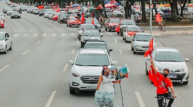 “Começou a carreata em Brasília! Muitos carros, bicicletas, todos por #ForaBolsonaro, por vacina, renda emergencial. O povo precisa de emprego, comida e combustível baratos, precisa de um governo brasileiro, com compromisso com o desenvolvimento e a dignidade humana”, disse a presidenta do PT, a deputada federal Gleisi Hoffmann.