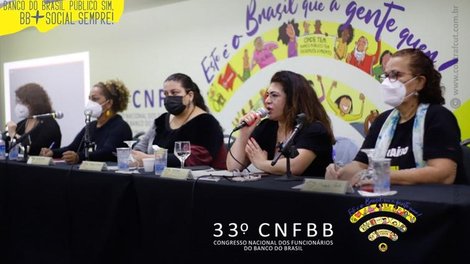 “Nós, mulheres, estudamos mais, somos multitarefa e maioria nesta categoria, mesmo assim não estamos, proporcionalmente, representadas nos espaços de comando”, refletiu Neiva Ribeiro, secretária-geral do Sindicato dos Bancários e Financiários de São Paulo Osasco e Região e vice-presidente da UniAméricas. Ela participou do Encontro sobre Desigualdade de Gênero e Raça no Trabalho e Renda, nesta sexta-feira (10), último dia do 33º Congresso Nacional dos Funcionários do Banco do Brasil.