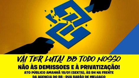 Em Cuiabá, O Sindicato dos Bancários de Mato Grosso (Seeb/MT) realiza grande ato na agência do BB, localizada na Avenida Getúlio Vargas com a Barão de Melgaço, a partir das 9h.