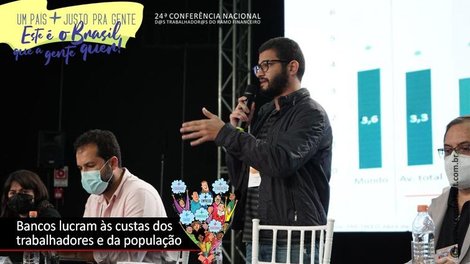 Na primeira mesa da tarde deste sábado (11), da 24ª Conferência Nacional dos Trabalhadores do Ramo Financeiro, o economista da subseção do Departamento Intersindical de Estatística e Estudos Socioeconômicos (Dieese) na Confederação Nacional dos Trabalhadores do Ramo Financeiro (Contraf-CUT), Gustavo Machado Cavarsan, realizou uma análise da conjuntura econômica. “Vimos no primeiro trimestre do ano os lucros dos bancos atingindo novos recordes e espelhando o modelo econômico concentrador de renda que vigora no país”, disse.