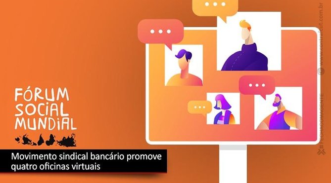As quatro oficinas promovidas em conjunto pela Confederação Nacional dos Trabalhadores do Ramo Financeiro (Contraf-CUT), pelo Sindicato de Bancários de São Paulo, pela Federação Nacional das Associações do Pessoal da Caixa Econômica Federal (Fenae) e pela UNI Américas Finanças serão realizadas nesta quinta e sexta-feira (28 e 29), no Fórum Social Mundial Virtual, que acontece até o 31 de janeiro de 2021.