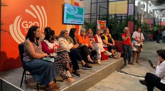 A luta pela igualdade salarial também foi destaque no primeiro dia de atividades do G20 Social. A visibilidade à luta pela igualdade salarial ganhou ainda mais destaque com a adição de elementos fundamentais à luta. Um deles é que é preciso não somente alcançar a equidade salarial, mas também mudar todo o sistema de trabalho de modo que a mulher seja de fato valorizada. A mesa teve participação do movimento sindical cutista, representado por Amanda Corsino, secretária da Mulher Trabalhadora da CUT.
