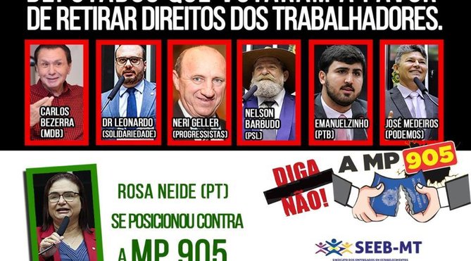 O Sindicato orienta os trabalhadores a cobrarem dos senadores que votem contra a MP 905. A categoria também deve se manifestar votando NÃO na enquete do Senado sobre a MP 905.