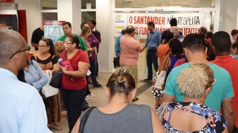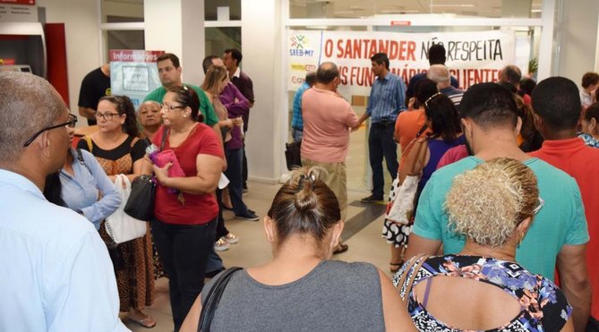 Em protesto contra a aplicação da reforma trabalhista de Michel Temer, encomendada por banqueiros e empresários, nesta quarta-feira (20.12), as agências e departamentos do banco Santander amanheceram de portas fechadas em todo o Brasil. Em Cuiabá, o Sindicato dos Bancários de Mato Grosso (Seeb/MT) retardou a abertura das agências por duas horas.