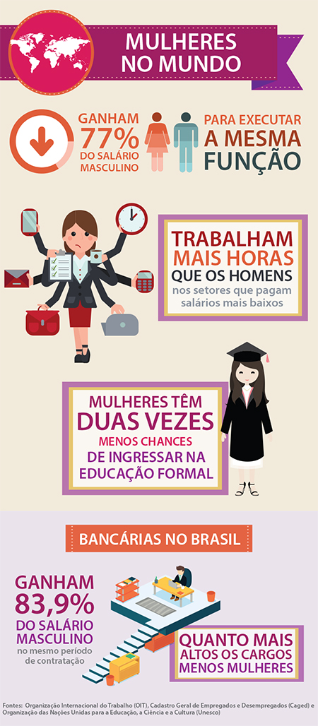 Os números apresentados pela OIT englobam 178 países e mostram que essa desigualdade acontece em todos os setores profissionais do mundo todo. O relatório aponta, ainda, que as mulheres trabalham mais horas que os homens nos setores que pagam salários mais baixos.