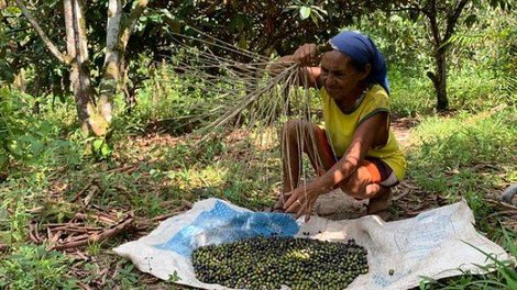 Dona Maria Alves da Conceição é da quinta geração do quilombo. Com 70 anos, ela tem pai negro e mãe índia. Enquanto conversava com a reportagem, Dona Maria debulhava um cacho de açaí branco para o almoço. Ela é mãe de 15 filhos, dos quais apenas dois ainda moram em sua casa.
