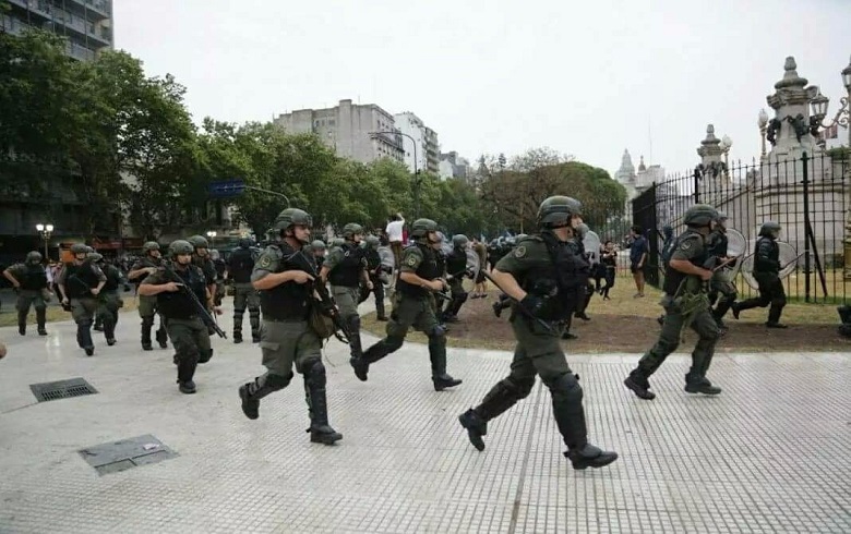 Desde as primeiras horas da tarde de hoje, um forte aparato policial foi montado na capital portenha. A proposta já está parcialmente autorizada pelo Senado. De acordo com informações do coletivo Passarinho, de brasileiros em Buenos Aires, “não se viam tantos policiais nas ruas desde a crise de 2001”.