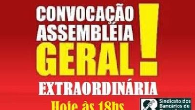 O Sindicato dos Bancários e Trabalhadores do Ramo Financeiro de Dourados e Região convoca a todos os bancários e bancárias da sua base sindical, a participarem da assembleia geral extraordinária que acontecerá de forma virtual nesta quarta-feira, 30 de junho, às 17:30 horas em primeira convocação e às 18:00 horas em segunda convocação.