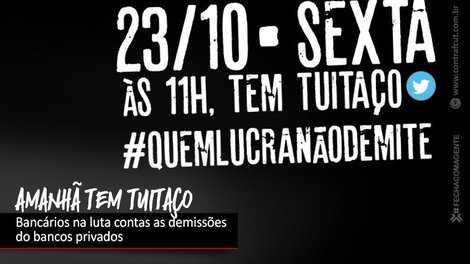 O tuitaço faz parte da campanha contra as demissões organizada pela Confederação Nacional dos Trabalhadores do Ramo Financeiro (Contraf-CUT) e pelo movimento sindical da categoria. Estão sendo feitas mobilizações nas redes sociais, intervenções urbanas em prédios e locais públicos, atos e paralisações nas agências e diálogo junto aos clientes com orientações contra as vendas casadas de produtos e direitos de melhor atendimento bancário.