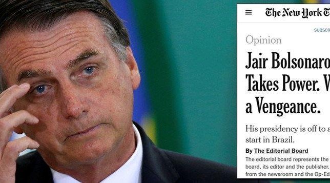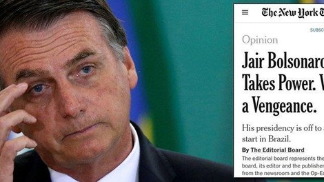 O The New York Times, maior jornal do mundo, criticou duramente, em editorial, as primeiras medidas de Jair Bolsonaro. "Mal Jair Bolsonaro tomou posse como presidente do Brasil, ele lançou uma série de decretos de extrema direita, minando as proteções ao meio ambiente, aos direitos indígenas sobre a terra e à comunidade LGBT, colocando organizações não-governamentais sob monitoramento do governo e removendo do governo os que não compartilham sua ideologia."
