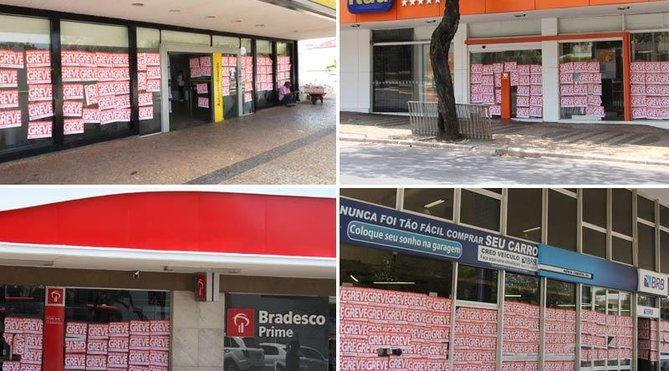 O primeiro dia de greve dos bancários das instituições públicas e privadas do DF, que decidiram cruzar os braços por tempo indeterminado a partir da 0h desta terça (6), foi forte e intenso, com grande adesão.