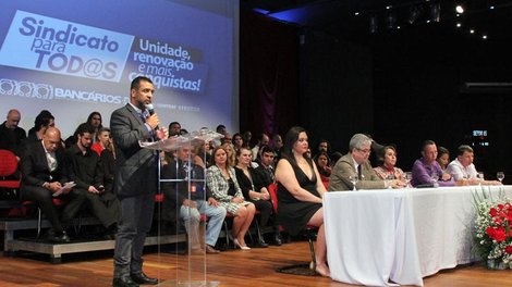 A nova diretoria do Sindicato tomou posse para o triênio 2016-2019, nesta quarta-feira (29), e reafirmou seu compromisso de defender os interesses da categoria bancária, ampliando suas conquistas, além de enfrentar as adversidades do momento, em que o atual governo ameaça a democracia e os direitos dos trabalhadores. A solenidade foi prestigiada por centenas de bancários, dirigentes sindicais e representantes da sociedade civil, na sede da entidade sindical.