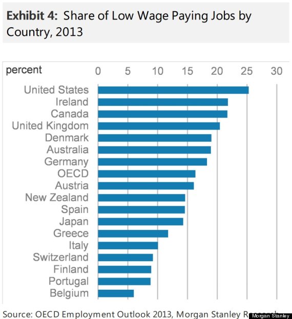 Assim, fica exposto que, no mínimo, existe uma tendência de que países que praticam um modelo de mercado de trabalho mais desregulamentado (Ou mais “livre” como gostam de chamar) são marcados por um contingente significativo de empregos de baixos salários.