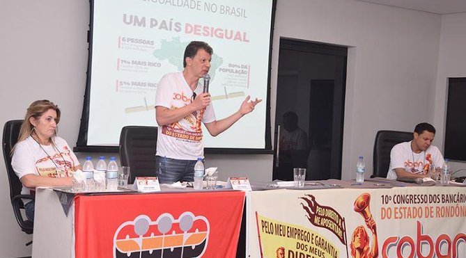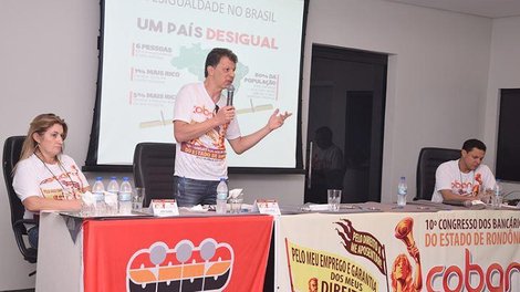 “É um absurdo o que está acontecendo com o emprego nesse país. São 13 milhões de desempregados, que representa 12,5% da população. Essa realidade está dentro da nossa casa, da agência bancária, e afeta as pessoas ao nosso redor e a nós mesmos. E falta trabalho para 26,3 milhões de pessoas, que incluem os subempregos. É violenta essa situação com a classe trabalhadora. Isso exige da gente uma ação para reverter essa situação. Temos que ter uma reforma tributária. Precisamos discutir nas bases a importância da reforma tributária. Uma senhora que ganha dois salários mínimos, ao final do mês, não pode continuar pagando 52% só em impostos. Por essas e outras que alguns estudos internacionais já apontam o Brasil como o mais desigual do mundo. E não adianta ter um PIB grande se não há distribuição correta de renda para todos”, acrescentou.