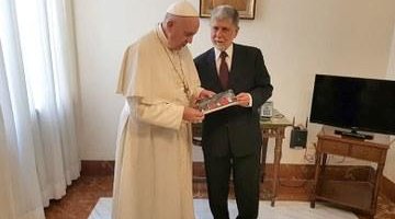 São Paulo – O papa Francisco recebeu, na manhã desta quinta-feira (2), Celso Amorim, ex-ministro das Relações Exteriores e da Defesa nos governos de Lula e Dilma, no Vaticano. O brasileiro entregou ao pontífice uma versão em italiano do livro A Verdade Vencerá, em que o ex-presidente narra a perseguição judicial de que é vítima para tirar sua candidatura das eleições deste ano.