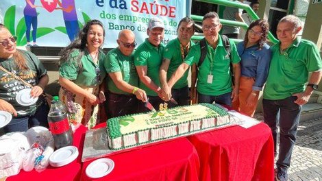 Os parabéns de 83 anos foram de forma coletiva, em frente a matriz do aniversariante do dia, o Banco da Amazônia (Basa). Bancários, bancárias, dirigentes sindicais, clientes e usuários participaram da festa em forma de ato político, porque nessas mais de 8 décadas, nem tudo é motivo de comemoração.
