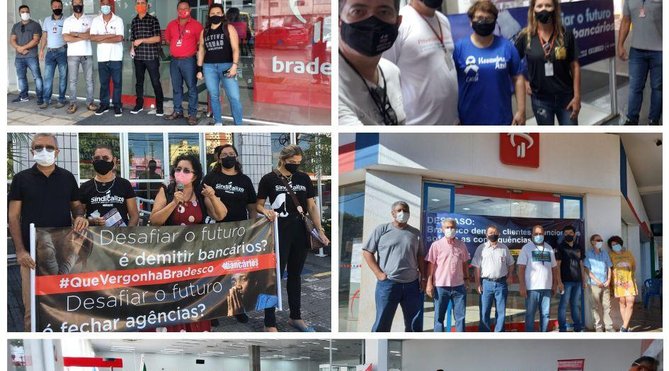 Bancários de todo o país se manifestaram, nesta terça-feira (23), nas imediações de agências e regionais do Bradesco em protesto contra demissões, cobrança de metas abusivas e a retirada das portas giratórias de segurança em diversas unidades do banco. Houve manifestações em todas as bases da Federação dos Bancários do Centro-Norte (Fetec-CUT/CN, como mostra a galeria de fotos abaixo.