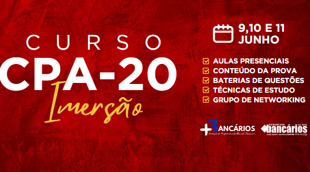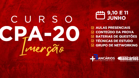 Para ascender na carreira profissional dentro de uma instituição financeira, é necessário que o trabalhador e trabalhadora tenha as certificações CPA-0 e/ou CPA-20, e para te ajudar na hora da prova, o Sindicato fechou uma parceria inédita com o professor Alan Moraes, que nos dias 9 a 11 de junho, vai te revelar os segredos da ANBIMA (Associação Brasileira das Entidades dos Mercados Financeiro e de Capitais) durante aulas presenciais, conteúdo da prova, baterias de questões, técnica de estudo e grupo de networking.