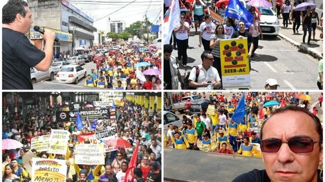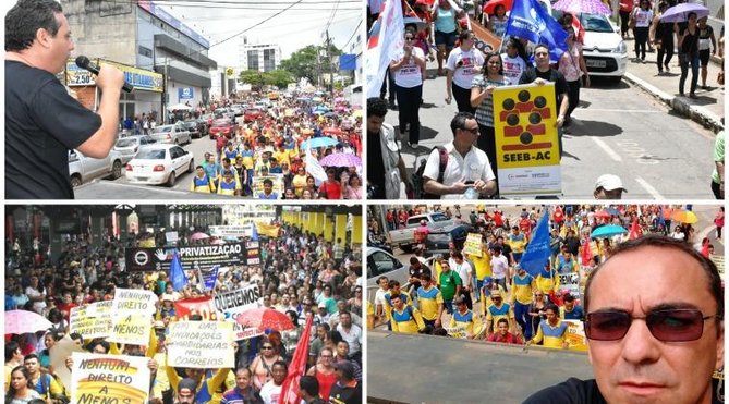 Rio Branco AC - Uma passeata pelas principais ruas e avenidas do centro de Rio Branco marcou na manhã desta quarta-feira (15), o Dia Nacional de Paralisação Contra as Reformas da Previdência, Trabalhista, e a retirada de direitos. O ato contou com a presença de quase mil manifestantes, entre sindicalistas de várias correntes, funcionários públicos e estudantes.