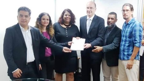 A Comissão de Empresa dos Funcionários do Banco do Brasil (CEBB), juntamente com a Coordenação do Comando Nacional e representantes das federações e sindicatos, fez a entrega ao diretor da Gestão de Pessoas do banco, Caetano Minchillo, na sede da Fenaban.