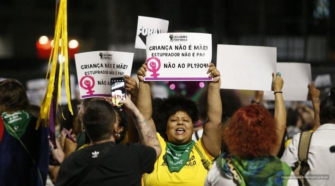 Segundo levantamento do Anuário Brasileiro de Segurança Pública, somente em 2022, cerca de 75 mil pessoas foram violentadas no Brasil, sendo quase 90% do sexo feminino e 60% crianças menores de 13 anos. Com isso, os movimentos sociais feministas apontam que os parlamentares que defendem o PL 1904 estão protegendo violadores e pedófilos em detrimento do cuidado às vítimas.