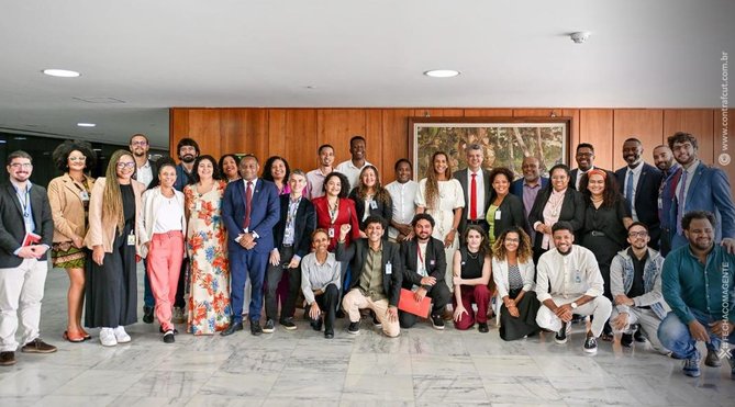 A reunião contou com a presença da ministra da Igualdade Racial, Anielle Franco, e do ministro da Secretaria-Geral da Presidência da República, Márcio Macêdo.