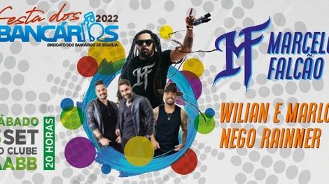 Depois de dois anos sem poder comemorar o Dia do Bancário e da Bancária, celebrado em 28 de agosto, o Sindicato promove em 3 de setembro mais uma edição da tradicional Festa dos Bancários. A celebração, que já faz parte do calendário cultural do DF, terá como atrações o ex-O Rappa Marcelo Falcão, a dupla sertaneja Wilian & Marlon e Nego Rainner.