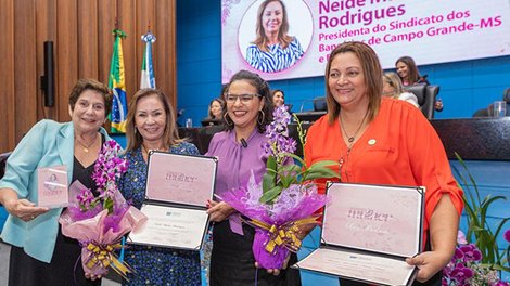 A presidente do Sindicato dos Bancários de Campo Grande-MS e Região, Neide Rodrigues, foi uma das homenageadas por indicação do deputado estadual Zeca do PT. Ela recebeu o Troféu Celina Jallad das mãos da deputada Gleice Jane e da ex-primeira dama Gilda Gomes.