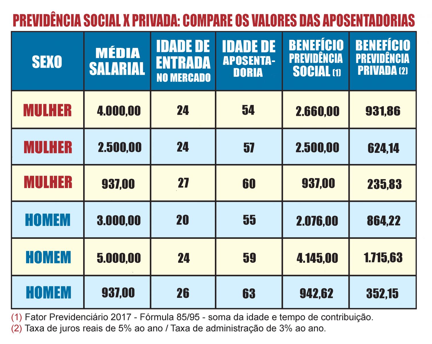 Um péssimo negócio, segundo especialistas. As diferenças entre os valores dos benefícios pagos pelos planos privados e os concedidos pela Previdência Social são “monumentais”, alerta o estudioso em Previdência e ex-presidente da Associação Nacional dos Participantes do Fundo de Pensão (Anapar) José Ricardo Sasseseron. Ele elaborou um estudo comparando o benefício de aposentadoria concedido pela previdência social pelas regras atuais com a renda que receberia se contribuísse com os mesmos valores para a previdência privada (veja tabela).
