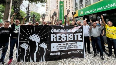 “Desde que ouvimos a decisão do banco em extinguir com o Quadro, nós fomos contra. E de lá pra cá, desde o final de 2021, viemos num processo de luta permanente onde tivemos que enfrentar um dia muito difícil, no mês de junho, que foi quando o banco apresentou a carta de demissão aos empregados, e que nós fizemos a nossa manifestação política aqui na porta desse banco, dizendo que nós não aceitávamos, como nós não aceitamos essa medida de demissão compulsória, arbitrária e injusta.”, lembra o diretor do Sindicato e membro do Quadro de Apoio, Sérgio Trindade.