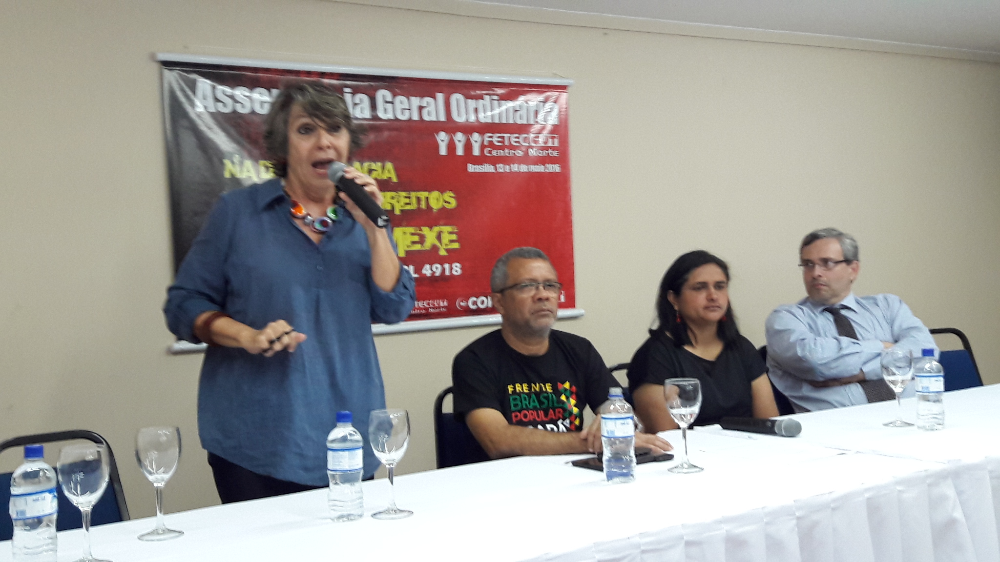 O debate realizado após as análises de conjuntura feitas pela deputada federal Erika Kokay (PT-DF) e pelo diretor do Ipea (Instituto de Pesquisa Econômica Aplicada), Cláudio Hamilton Matos, chegou a um consenso de que as primeiras medidas tomadas pelo presidente interino Michel Temer apontam para uma ofensiva contra os direitos sociais e trabalhistas e tentativa de criminalização do movimento sindical e dos movimentos sociais.