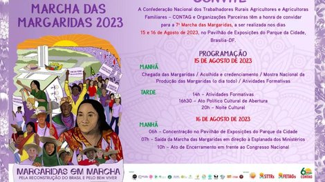A 7ª edição da Marcha apresenta Mostra Nacional da Produção das Margaridas, atividades formativas, ato político-cultural e noite cultural. Essa parte da agenda será realizada no Pavilhão de Exposições do Parque da Cidade, na terça (15). A partir das 6h da quarta (16), começa a concentração para a caminhada até o Congresso Nacional.