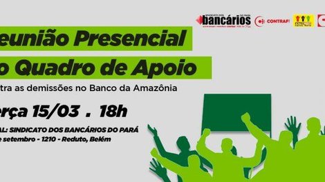 Além disso, a reunião também pretende organizar novas ações políticas e calendários de luta contra a demissão do Quadro de Apoio e demais empregados do Banco da Amazônia.