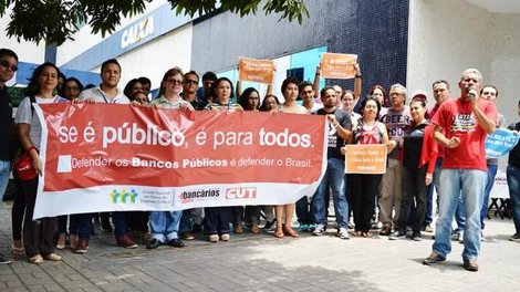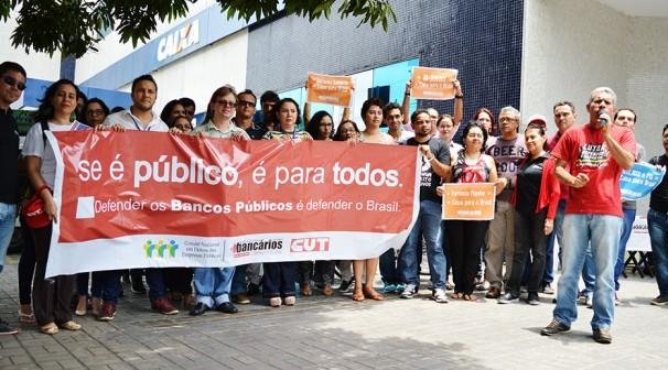 Hoje (20) o primeiro ponto batido foi o de protesto, bancários e bancárias do Edifício Sede da Caixa, em Belém, marcaram presença no quarto ato em Defesa dos Bancos Públicos promovido pelo Sindicato dos Bancários, como parte do calendário de lutas da Campanha Nacional da categoria.