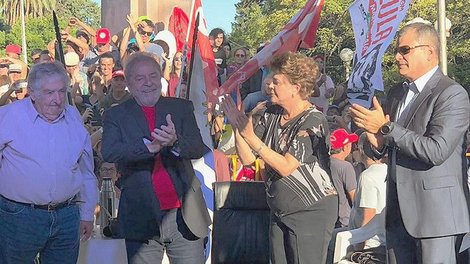 A segunda parada da Caravana Lula pelo Sul, que começou na manhã desta segunda-feira (19), reuniu quatro ex-presidentes sul-americanos na cidade de Santana do Livramento (RS): José Pepe Mujica, do Uruguai, Rafael Correa, do Equador, além dos brasileiros Dilma Rousseff e o próprio Lula.