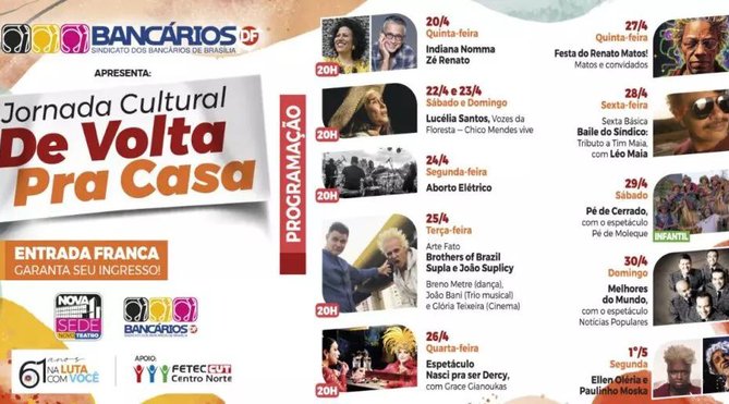 Durante esses dias, você poderá conferir uma programação diversificada e gratuita, com atividades voltadas para valorizar a cultura local e proporcionar momentos de lazer e descontração para as bancárias e os bancários, seus familiares e toda a comunidade.
