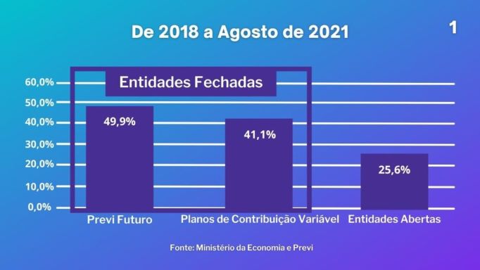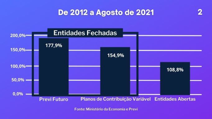 Para demonstrar essa perspectiva, ele apresentou na live os quadros abaixo, cruzando dados do Ministério da Economia e da Previ e abarcando dois períodos distintos: de 2018 a agosto de 2021 (o último dado disponível) e de 2012 a agosto de 2021. Compare.