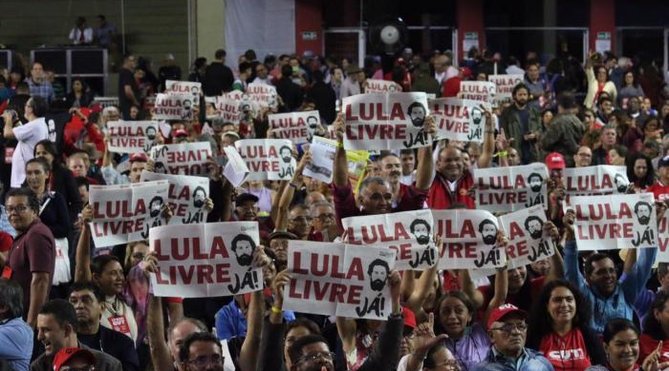 Lula é mantido preso político em Curitiba desde abril de 2018, depois de um processo ilegal e inconsistente, comandado pelo ex-juiz Sérgio Moro, que virou ministro da Justiça de Bolsonaro.
