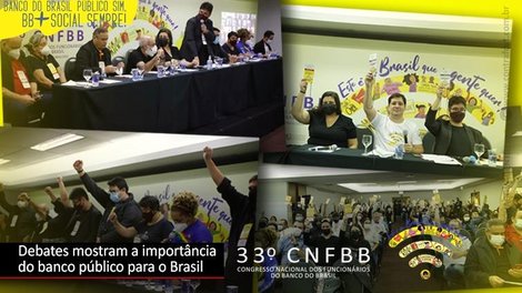 Tiveram início nesta quinta-feira (9) os trabalhos do 33° Congresso Nacional dos Funcionários do Banco do Brasil “BB público sim, BB mais social sempre!”, em que estão sendo debatidas melhores condições de trabalho da instituição, seu papel no desenvolvimento econômico e social, no combate à fome e na reconstrução do país. Na quarta-feira (8), ocorreu a abertura solene unificada dos bancos públicos. O evento, em formato híbrido, segue até esta sexta-feira (10), com a parte presencial no Holiday Inn Parque Anhembi, em São Paulo.