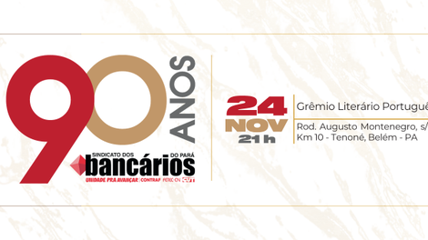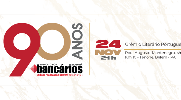O Sindicato dos Bancários do Pará comunica sua base de sindicalizadas e sindicalizados que a retirada dos convites físicos para acessar o salão de festas do Grêmio Literário e Recreativo Português (GLRP) para as comemorações dos 90 anos da entidade ocorrerá nos dias 21 e 22 de novembro, das 9h às 17h, na sede de Belém (Rua 28 de setembro nº 1210, Reduto).