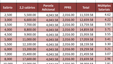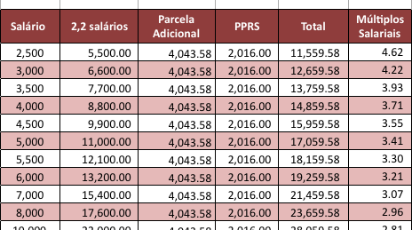 - Regra básica: 2,2 salários (limitado a R$23.861,00, conforme a CCT)