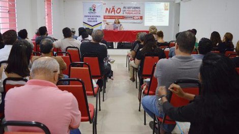 A tarde, a programação continuou com temáticas sobre a ‘reforma’ da Previdência e Trabalhista, com a palestra “As consequências da ‘reforma’ Trabalhista na saúde dos trabalhadores”, ministrada pela auditora fiscal do trabalho da Superintendência Regional do Trabalho (SRT), Edna Rocha, que relembrou a importância de debater o atual momento político do país.
