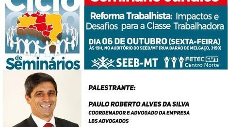 O tema será abordado pelo coordenador e advogado da empresa LBS Advogados, Paulo Roberto Alves da Silva, no auditório da SEEB, em Cuiabá, a partir das 19 horas.