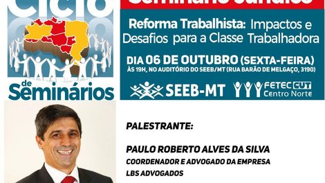 O Sindicato dos Empregados em Estabelecimentos Bancários e do Ramo Financeiro de Mato Grosso (SEEB-MT) e a Federação dos Trabalhadores em Empresas de Crédito do Centro Norte (Fetec-CUT/CN) promovem na próxima sexta-feira (06.10), um Seminário Jurídico com tema "Reforma Trabalhista - Impactos e Desafios para a Classe Trabalhadora".