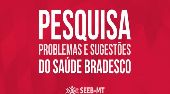 O Sindicato dos Bancários de Mato Grosso (SEEB-MT) lançou uma pesquisa de satisfação sobre o Saúde Bradesco. Em reunião com representantes do Bradesco, os diretores do Sindicato debateram sobre o Plano de Saúde/Dental para solucionar possíveis inconsistências no plano. O objetivo é elencar as principais demandas apontadas pelos bancários e bancárias do Bradesco em Mato Grosso.