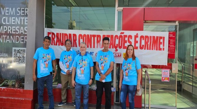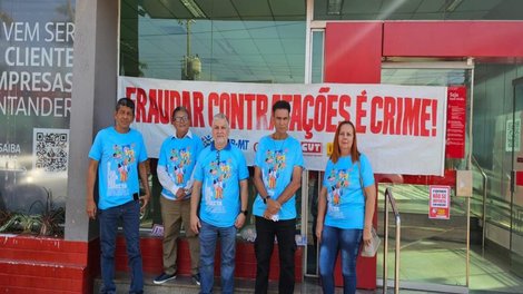 Mesmo com o aumento do lucro em 46,9% no primeiro semestre de 2024, o Santander insiste em manter as demissões e a redução nos postos de atendimentos. Por este motivo, o Sindicato dos Bancários de Mato Grosso (SEEB-MT) realizou uma paralisação das atividades por duas na agência Santander, em Várzea Grande. Houve reunião com a categoria e mobilização para Campanha Nacional em andamento. O Sindicato colocou faixas na porta do banco para dialogar com a população.