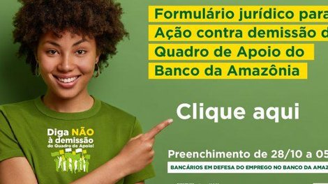 Por isso, a assessoria jurídica do Sindicato dos Bancários do Pará preparou um formulário para que os bancários e bancárias possam preencher informações pessoais e profissionais e assinar um termo de autorização para o uso delas na ação judicial que as entidades sindicais irão mover contra a demissão em massa do Quadro de Apoio no Banco da Amazônia.
