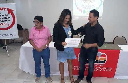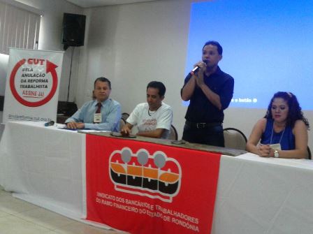 Ao dar posse aos novos delegados sindicais do Banco do Brasil, da Caixa Econômica Federal e do Banco da Amazônia, o Sindicato dos Bancários e Trabalhadores do Ramo Financeiro de Rondônia promoveu nesta sexta-feira 20 de outubro um curso de formação e o Seminário “Reforma Trabalhista – Você Sabe O Que Muda Nas Leis Trabalhistas A Partir de Agora?”, que contou também com a participação de diretores de base da entidade, bancários, cooperativários e militantes de outras categorias profissionais, num total de 70 pessoas de todo o Estado.