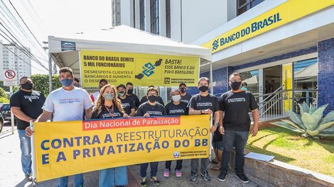 Os dirigentes sindicais se reuniram com os bancários para discutir a reestruturação e pedir o apoio dos trabalhadores para somar na luta. Também houve diálogo com os clientes e população em geral, com a entrega de uma carta aberta sobre a importância do BB para todos.